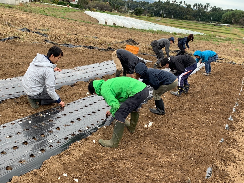午後は畑山さんの圃場見学と、にんにくの苗の植え付け体験を行いました。